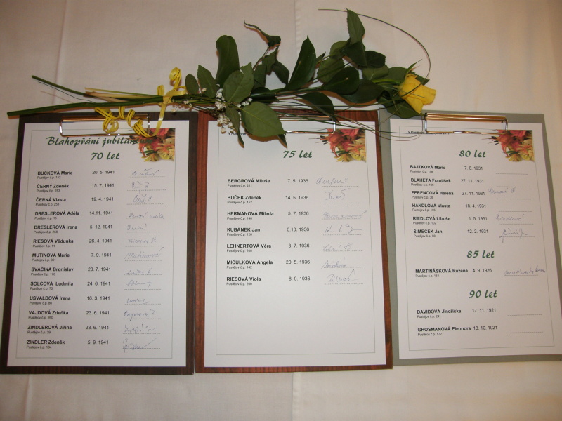 Odpoledne 6. listopadu 2011 se uskutečnilo setkání jubilantů. Potěšit je svým vystoupením přišly také děti ze základní školy, pod vedením p. uč. Klementové. U malého pohoštění si všichni přítomní společně zavzpomínali na prožité chvíle svého života. Akce se zdařila, domů odcházeli spokojeni senioři až ve večerních hodinách.